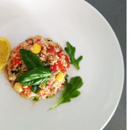 - Rassembler le mélange quinoa-protéines de soja avec les légumes. Goûter et assaisonner d'avantage si besoin